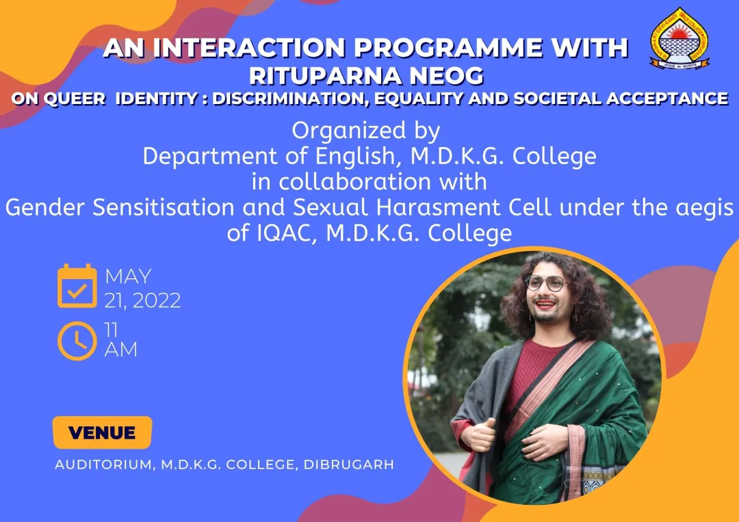 AN INTERACTION PROGRAMME WITH RITUPARNA NEOG ON QUEER IDENTITY: DISCRIMINATION, EQUALITY AND SOCIETAL ACCEPTANCE